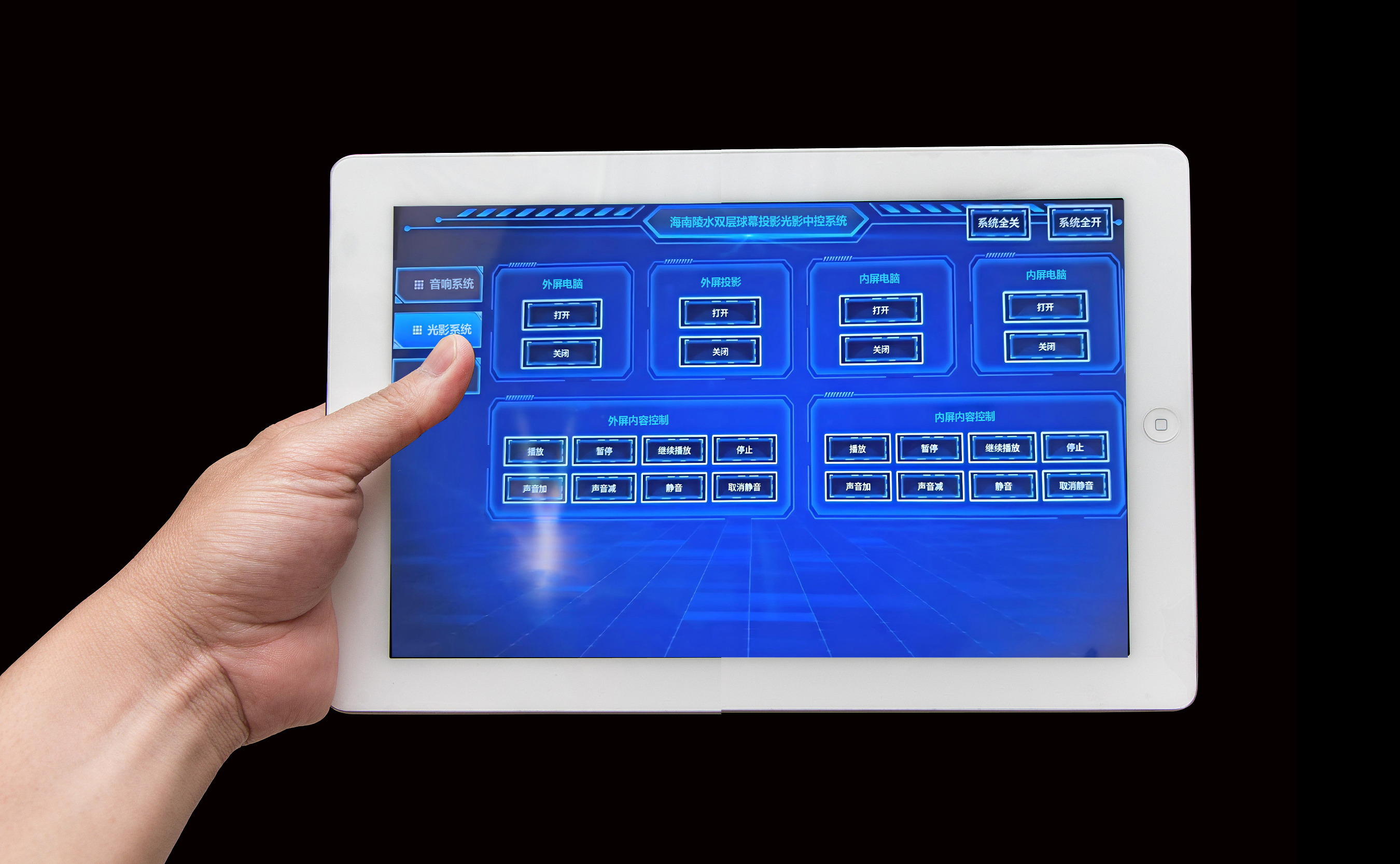 视美乐控制系统为双层球幕投影提供全方位的集中管理,通过个人终端即可一键操控,实现内容切换、播放调度、状态监控等全流程智能化运维。