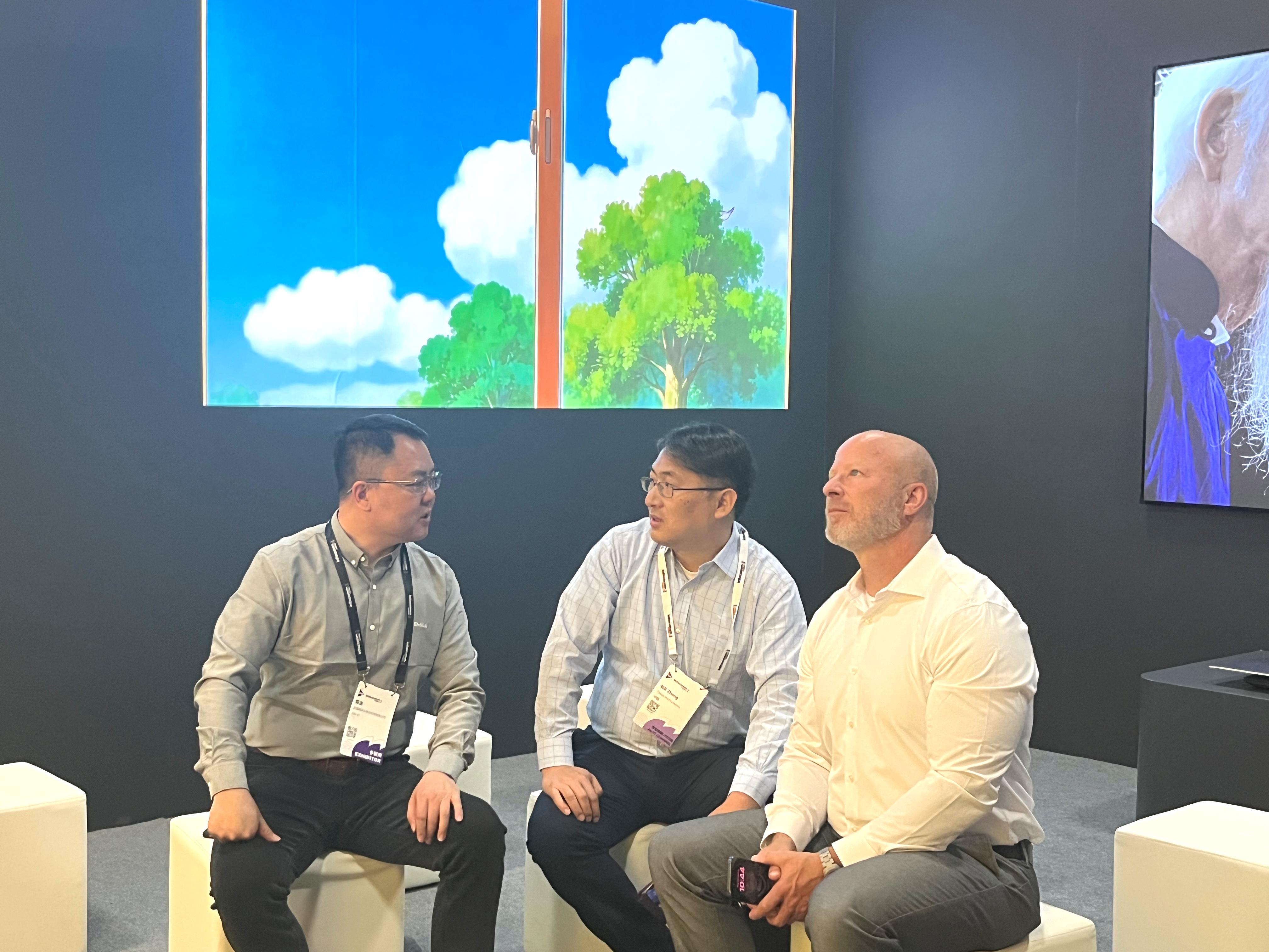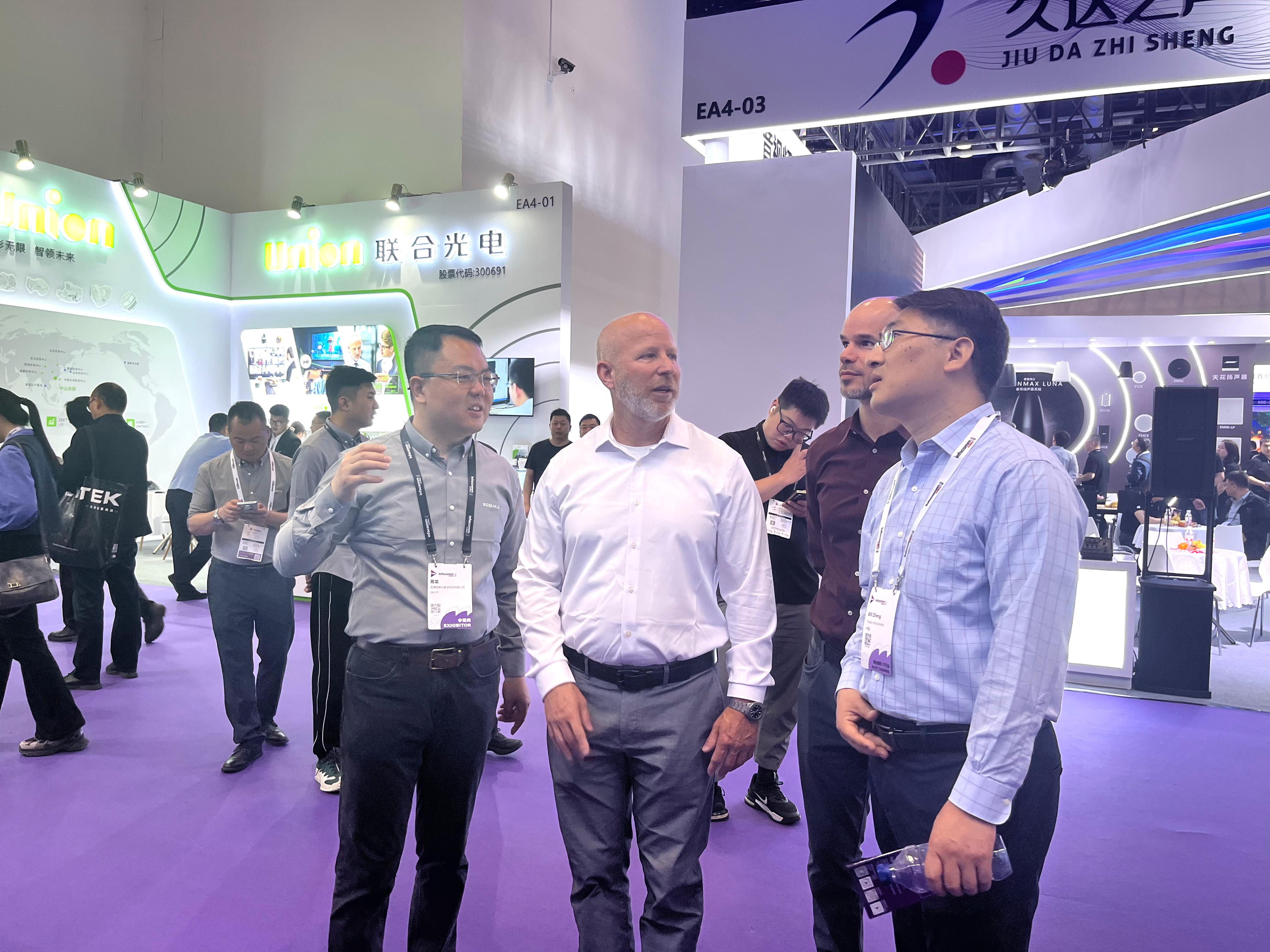 在本次展会上,德州仪器(TI)副总裁Jeff先生专程莅临视美乐展位,与董事长陈龙先生进行了热切而深入的交流。Jeff先生对于视美乐DLP投影机高色亮与高色准带来的出色画质表示惊叹,认为其表现全面超越同规格3LCD投影机,并对视美乐在 HEP技术路线上的持续创新以及刚发布的EL Pro系列产品“双一百”的定位给予了高度认可,认为EL Pro系列是攻破3LCD投影机在全球5000-8000流明段堡垒的利器。这不仅是国际顶尖半导体厂商对视美乐创新实力的充分肯定,也彰显了DLP技术在高端显示领域不断突破的广阔前景。