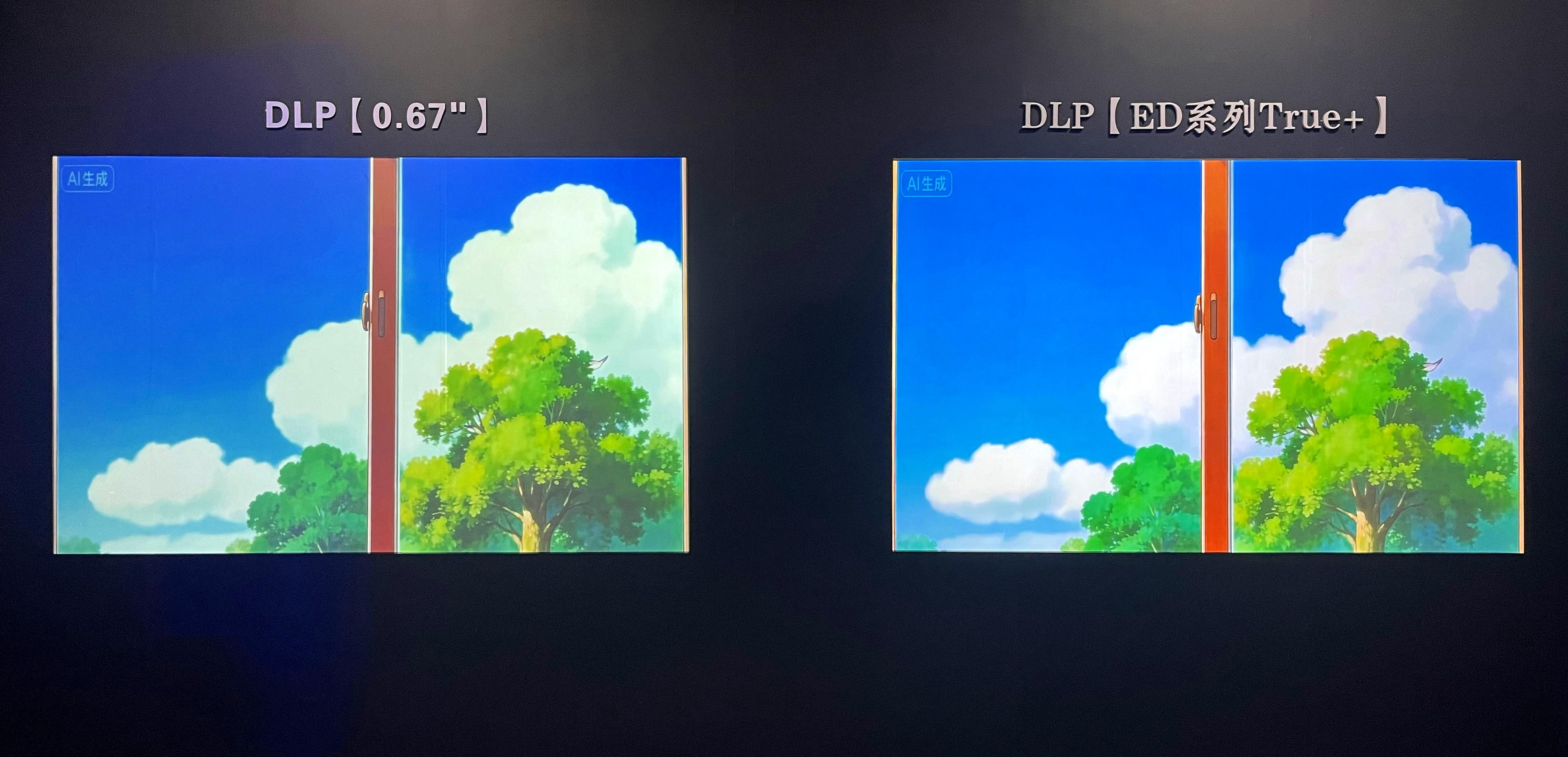 在展览馆等暗场低光的环境模拟下,视美乐True+真彩系列则展现了其在暗场环境下的专业级表现,99%的REC.709色域覆盖率及D75优化白场技术确保每一帧投影画面都能真实还原自然原色。相较于常规投影机在暗场环境下容易出现的色偏、暗部细节丢失等问题,现场实测中,True+真彩系列彻底告别暗场下的“发灰”现象,发挥高饱和度、高亮度优势,让每一处细节都清晰可辨。