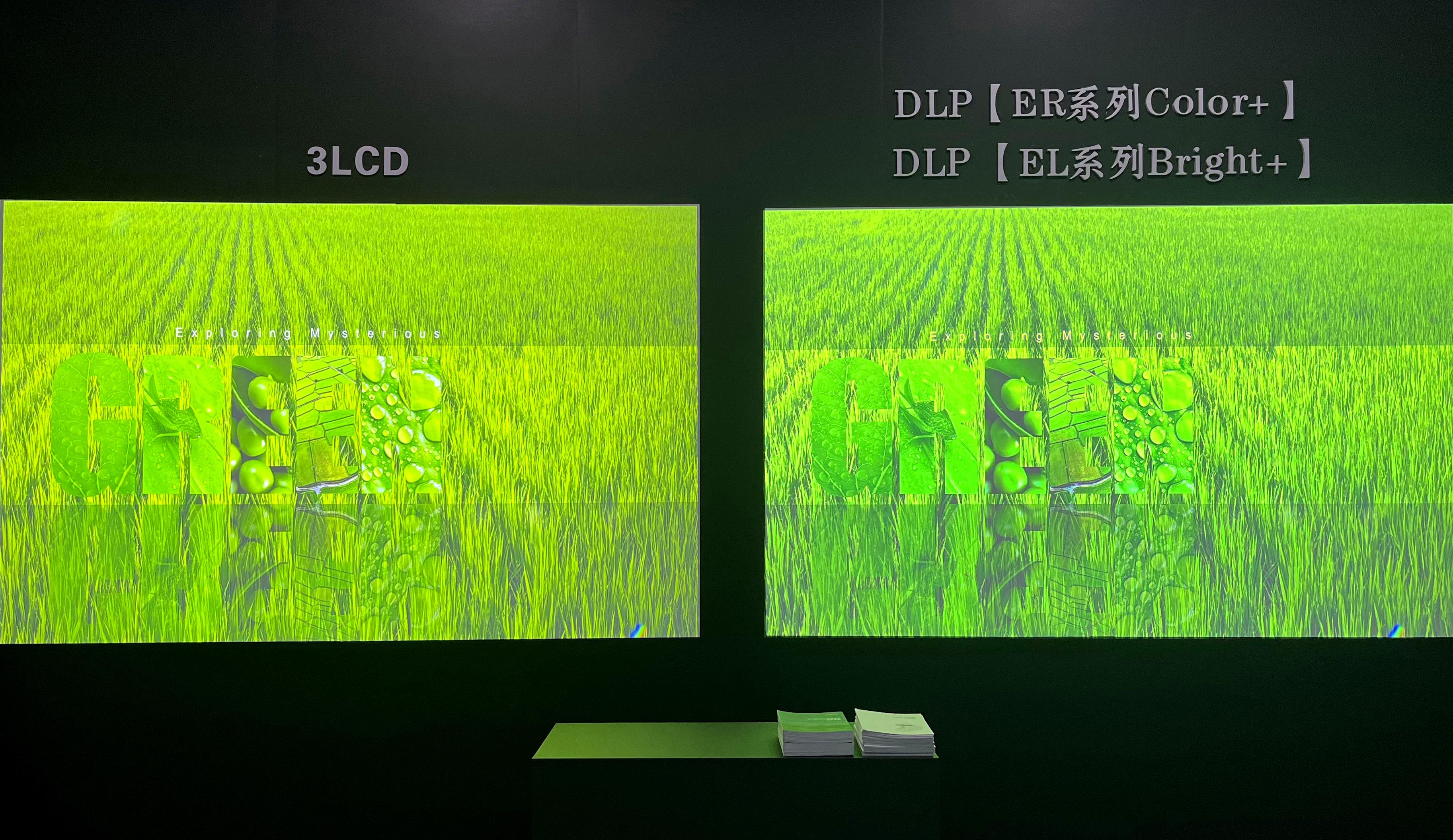 在明亮教学场景模拟下,EL Pro双百系列在现场实测对比中表现优异,对比同规格液晶投影机不仅整体亮度与画面观感毫不逊色,在长时间稳定投射上同样表现稳健,更是在色域、白场表现、均匀性、对比度、文字清晰度等核心维度上实现了全面超越。无论是强光环境下的课件板书、图表细节,还是多媒体教学中的色彩还原与画面过渡,都能保持清晰锐利、色彩纯正,有效解决传统投影机在教室自然光下画面发灰、细节模糊、色彩失真等痛点,为现代化智慧教室、多媒体报告厅等场景带来更适配、更可靠的高亮投影解决方案。