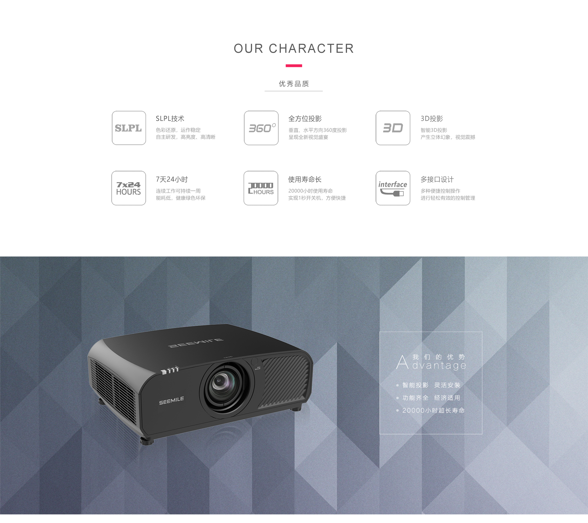 十三个系列数十款产品,多亮度区间,涵盖了教育、家用、商显、工程等各应用平台